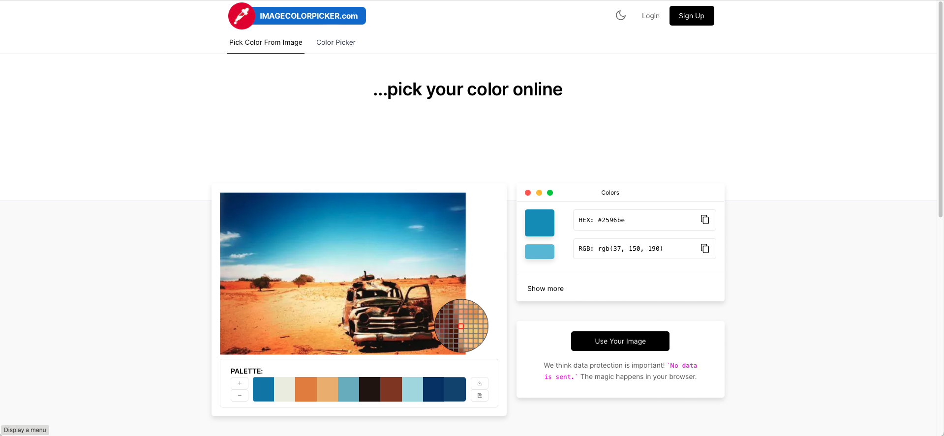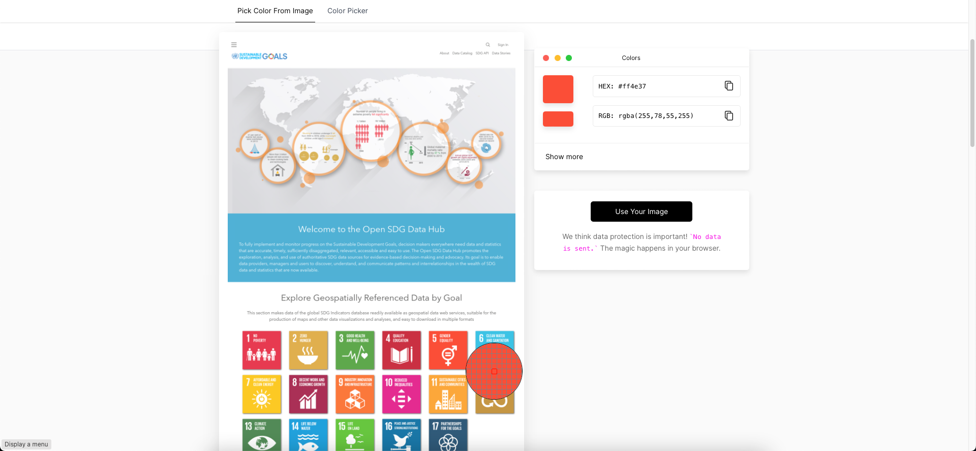 We will try to find a red icon representing women. To ensure we're using the same red as in the goal, go to the https://imagecolorpicker.com website and click on Use Your Image.