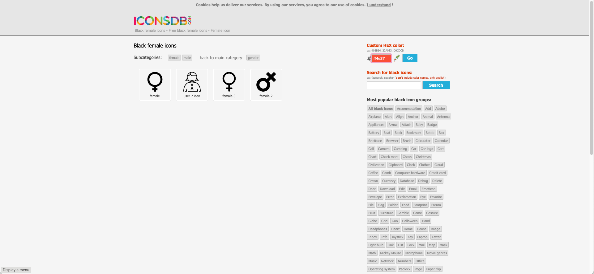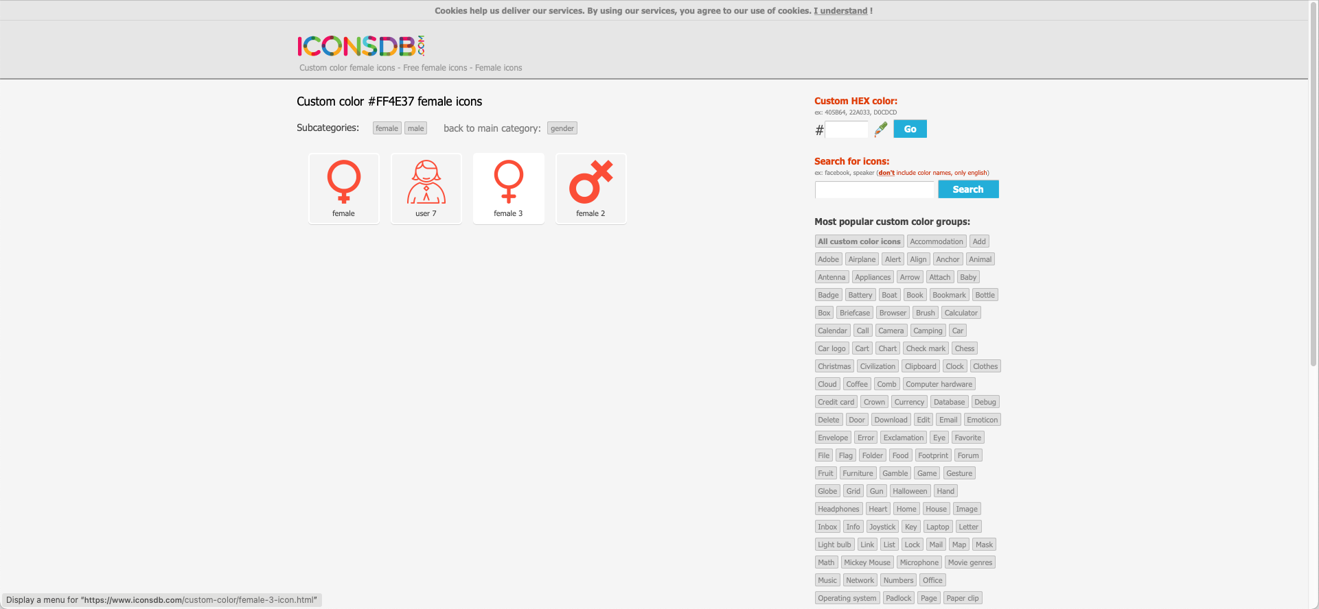 Go to Icons DB and enter 'female' in the search field on the right.