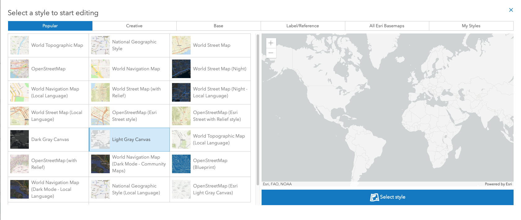 From Popular, select the Light Gray Canvas style. Then, validate your choice by hitting Select Style.