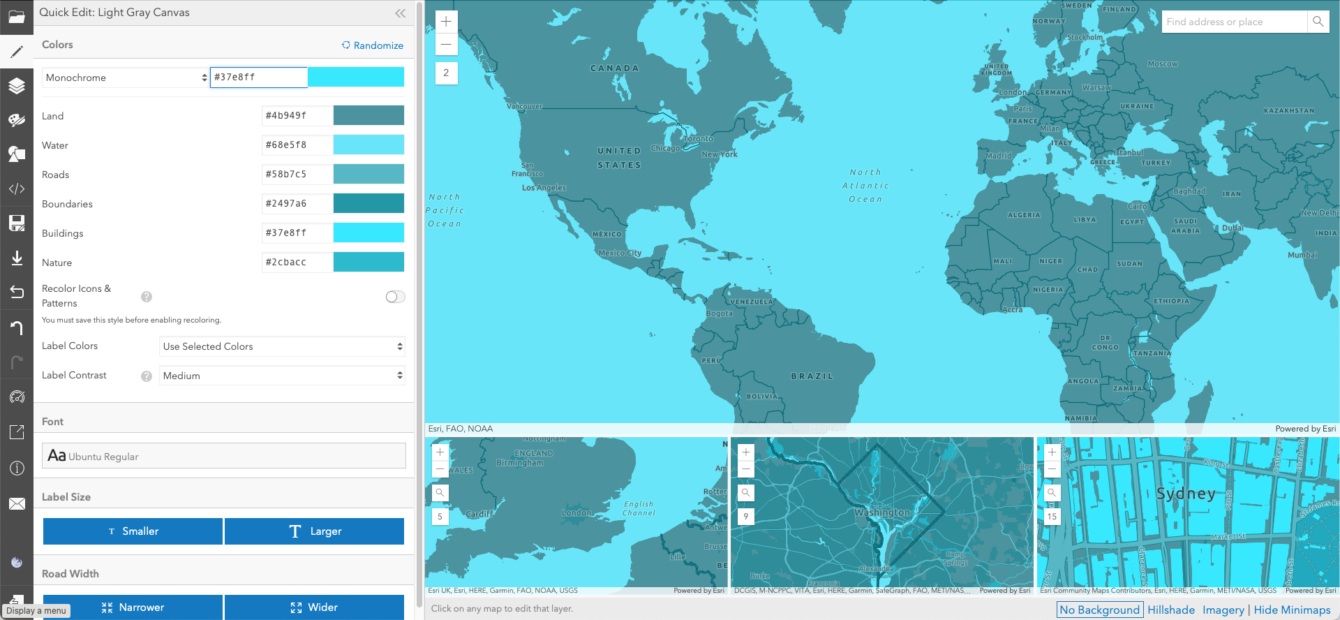 Go back to the Vector Tile Style Editor and enter '#37E8FF' next to Monochrome.
