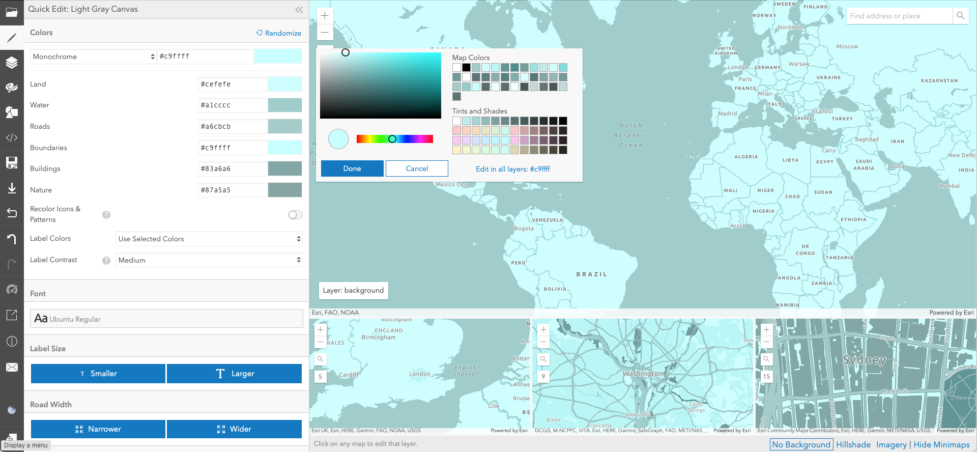 After trying a few options below Map Colors, I decided to stick with #c9ffff. Choose the map colour of your preference and click Done.
