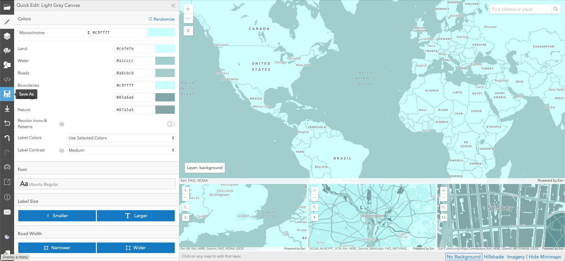 Now let's save this basemap by clicking Save As on the left.