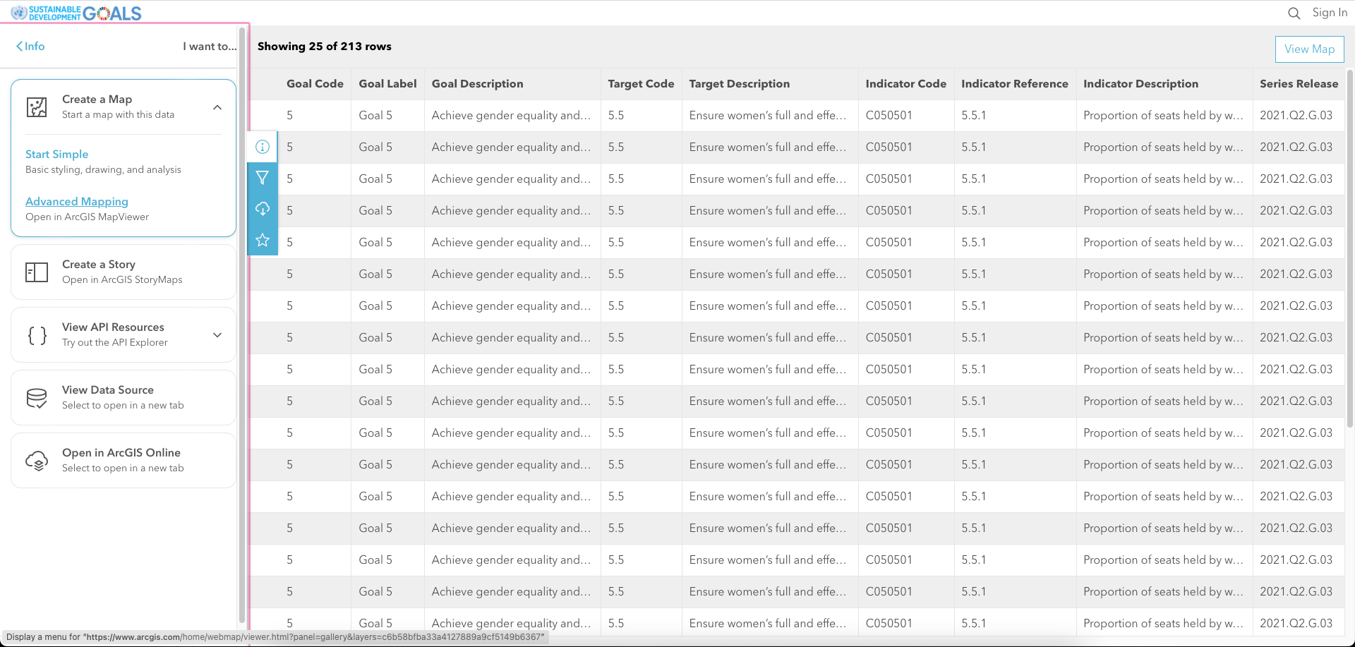 In this tutorial, you'll create an app showcasing one of SDG's goals, Goal5 - Achieve gender equality and empower all women and girls, represented in the top 10 countries by the percentage of women in national parliaments.