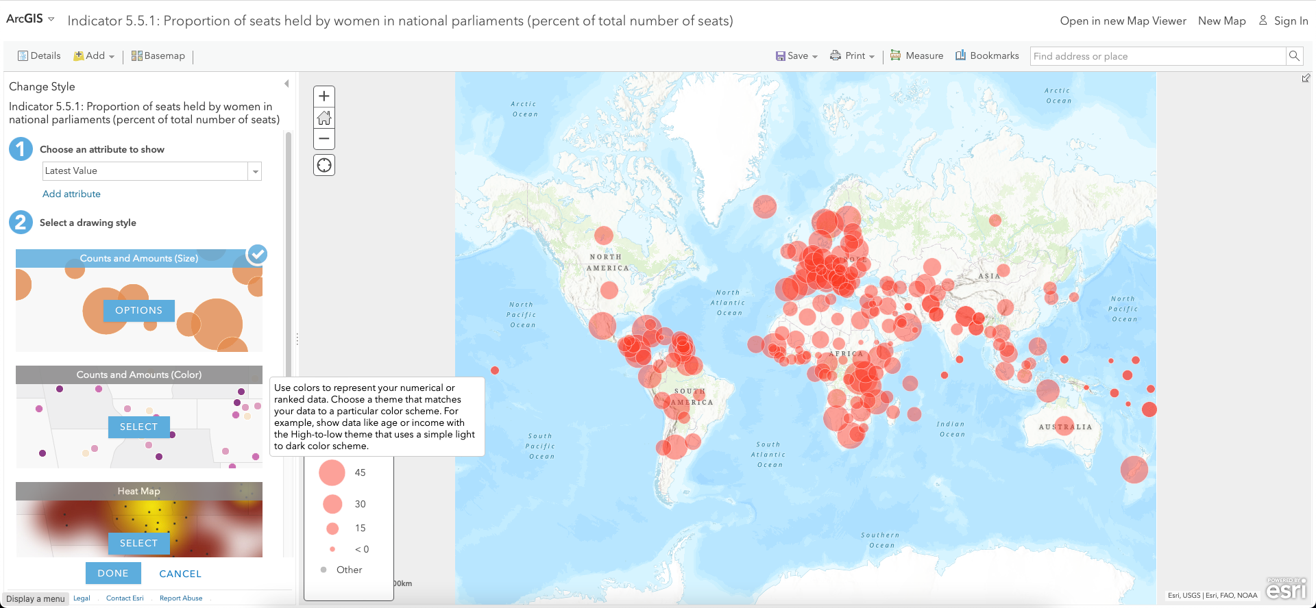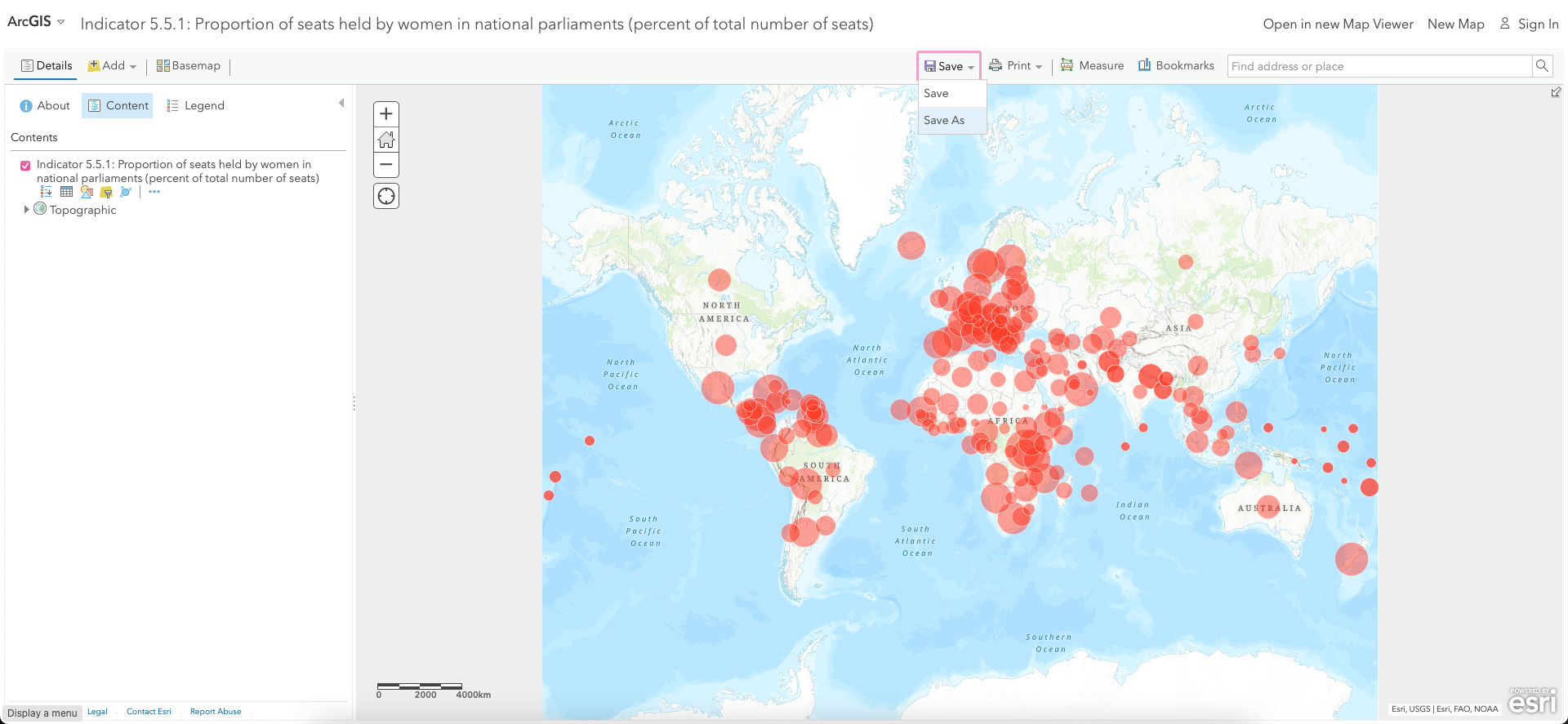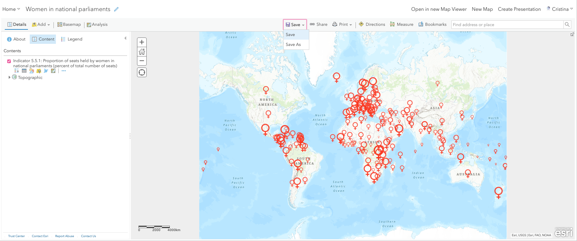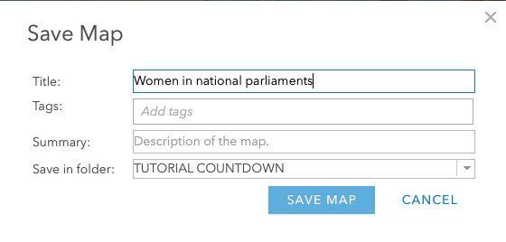 Now give a name to the map (e.g., 'Women in national parliaments') and save it in the desired folder.