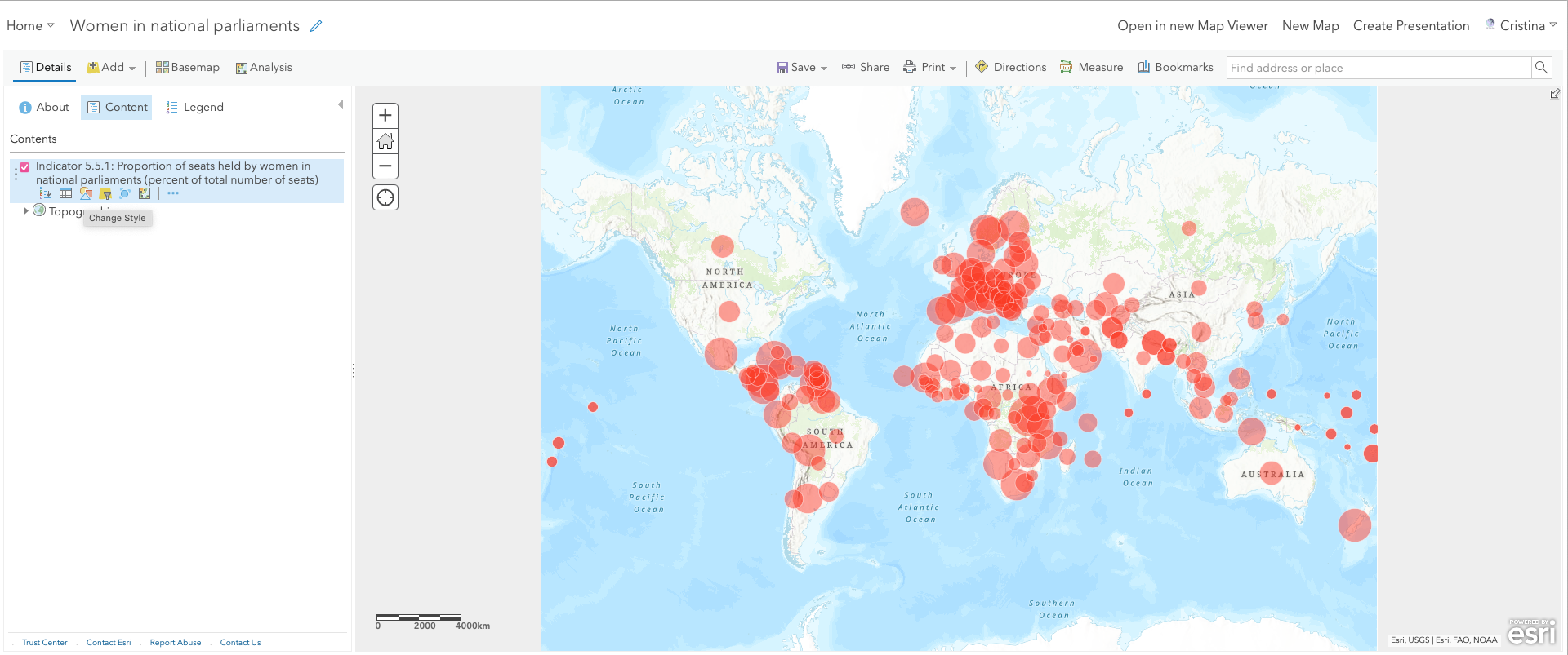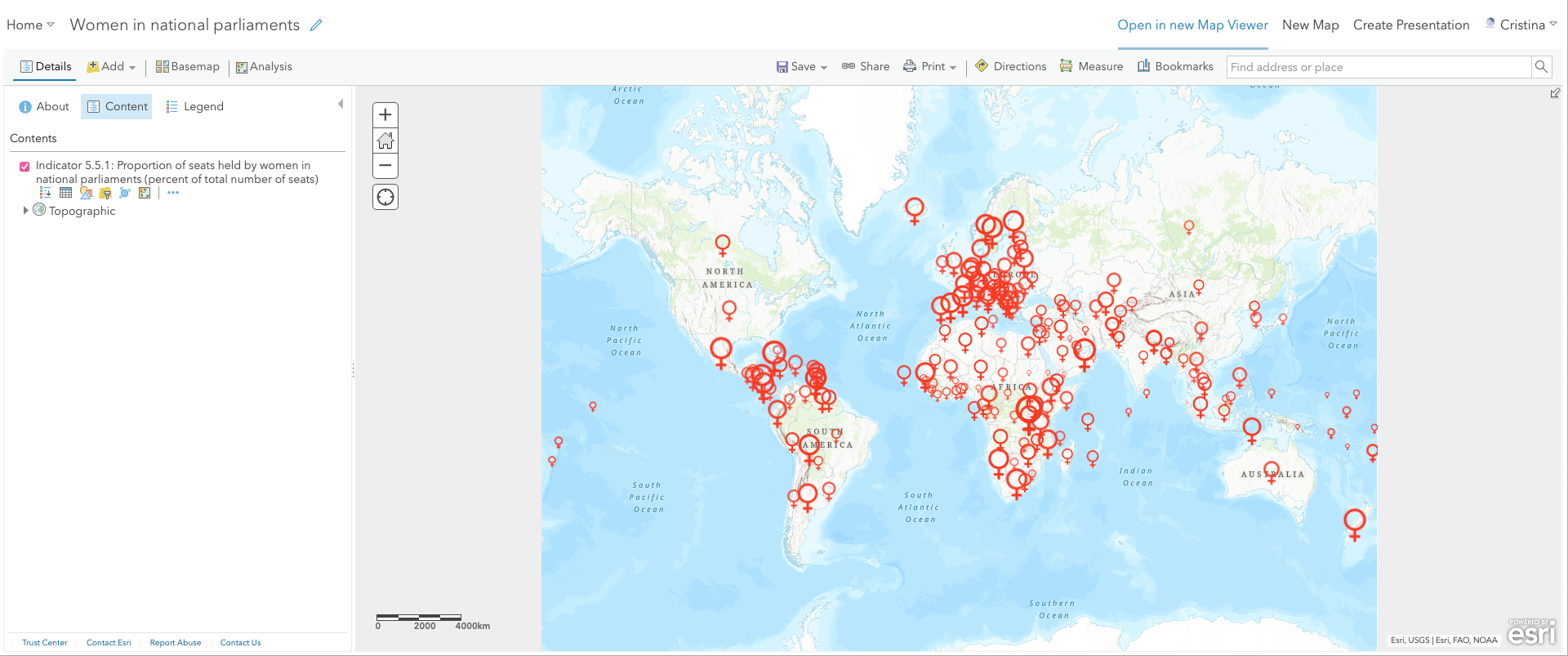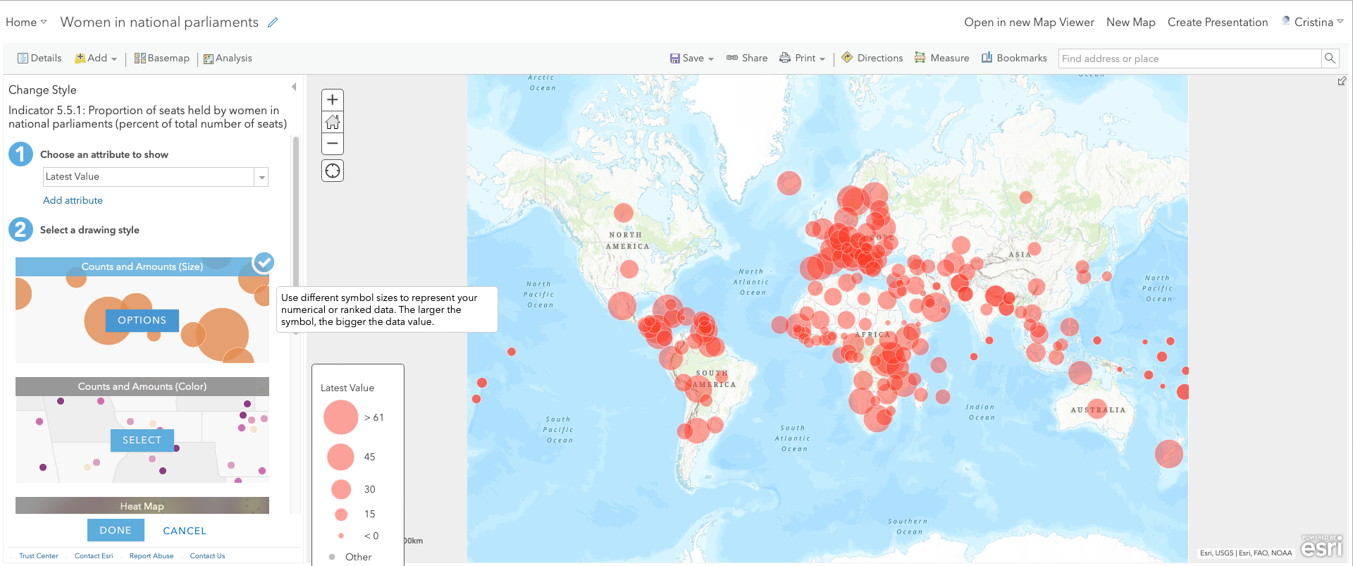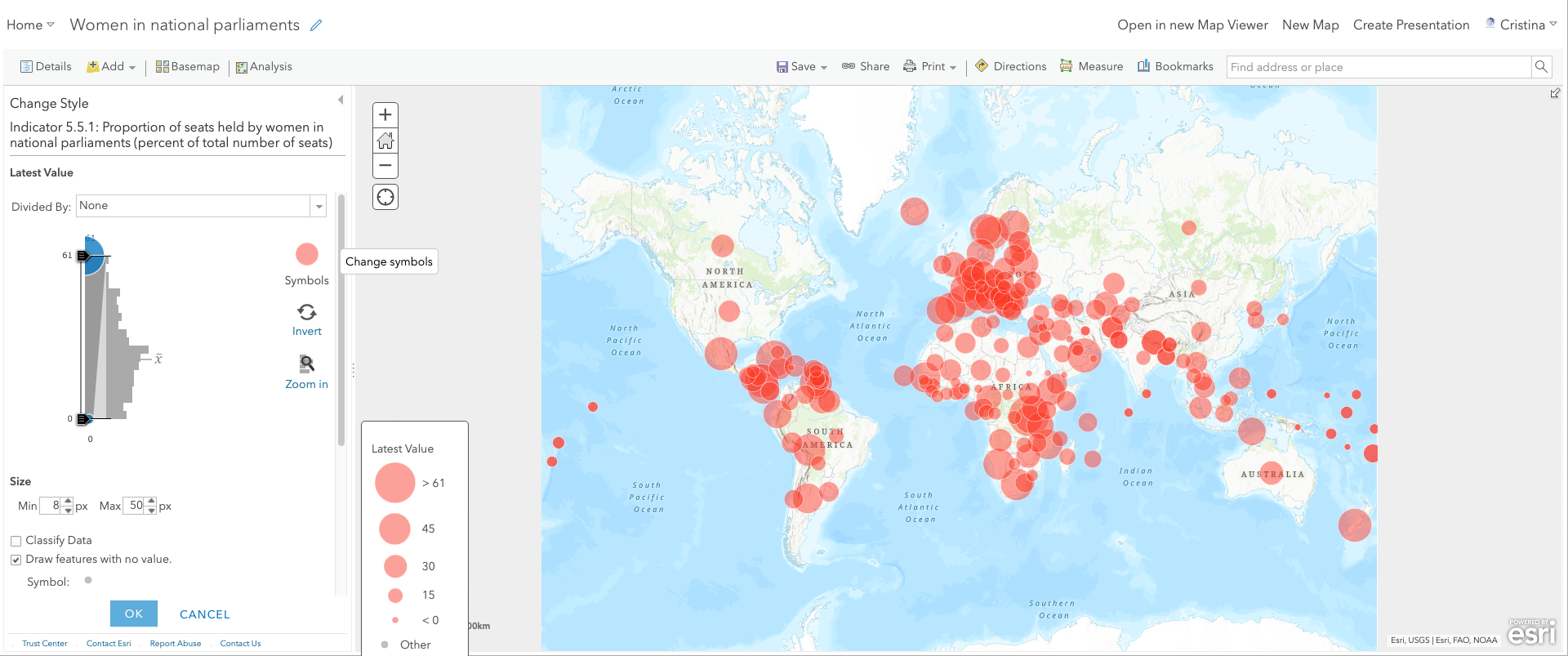 Now give a name to the map (e.g., 'Women in national parliaments') and save it in the desired folder.
