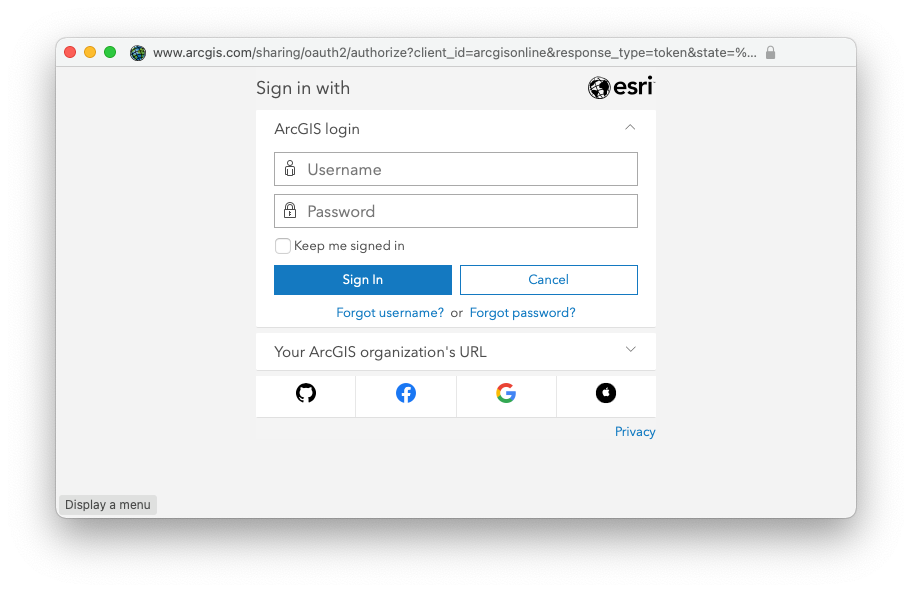 Sign in with your ArcGIS Online credentials.