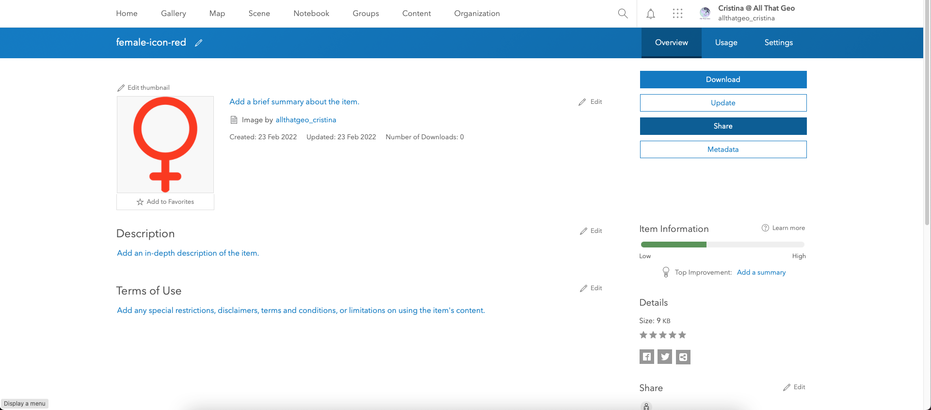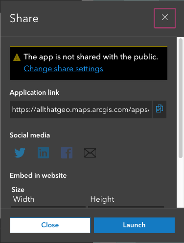 To use this icon in the web map, we need to make it public. Click on Share on the right.