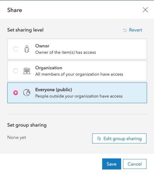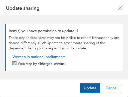 Click Update to update sharing of the web map.