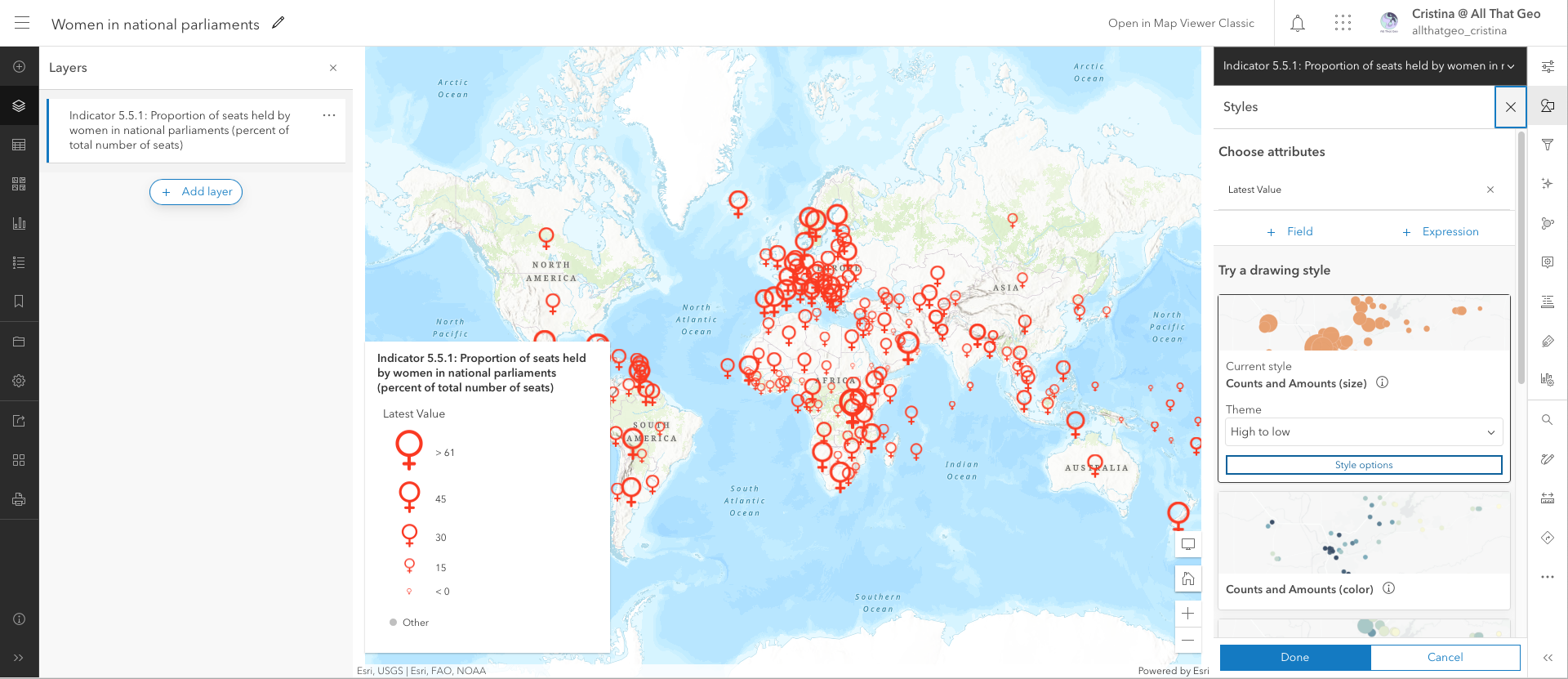 Now that we're in the new Map Viewer let's customise the icon even further. Select the layer on the left and click on Styles, on the right, and then on Style options.