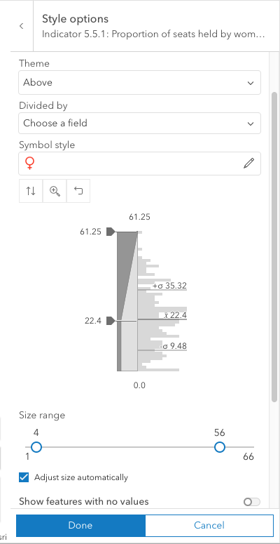 - In Theme, change to Above. The idea is to highlight the countries where the percentage of women in the national parliament is higher than the average.