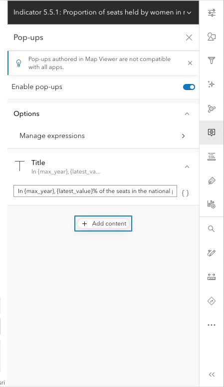 Start by making sure the layer is selected on the left and choose Configure pop-ups on the right.