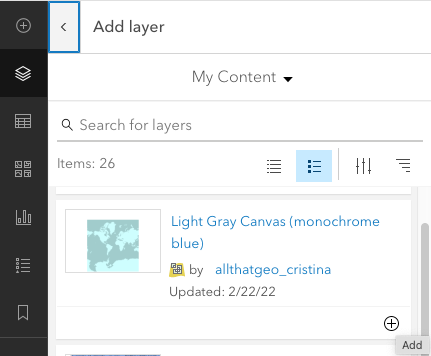 Go back to the map and click on Layers on the left.