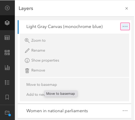 Click on the three dots next to Light Gray Canvas (monochrome blue) and select Move to basemap.