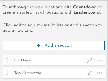 One of those templates is Countdown. This template enables you to create an interactive countdown experience based on an attribute. Then, as you tour that top-n countdown, you see the features on the map, along with other information on each location.