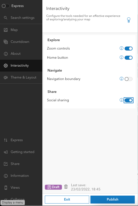 In Interactivity, enable Social sharing.