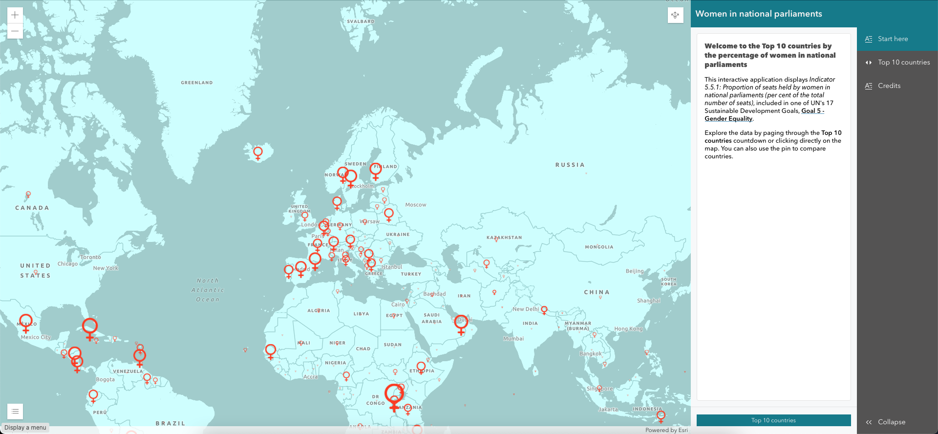 - Details section title: 'Welcome to the Top 10 countries by the percentage of women in national parliaments'
